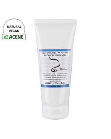 Gel fijador rizos extrafuerte antiencrespamiento, a base de Aloe Vera y aceite de jojoba.