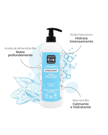 Champú extra suave ácido hialurónico & almendras Bio 740ml - NaturaBIO Cosmetics