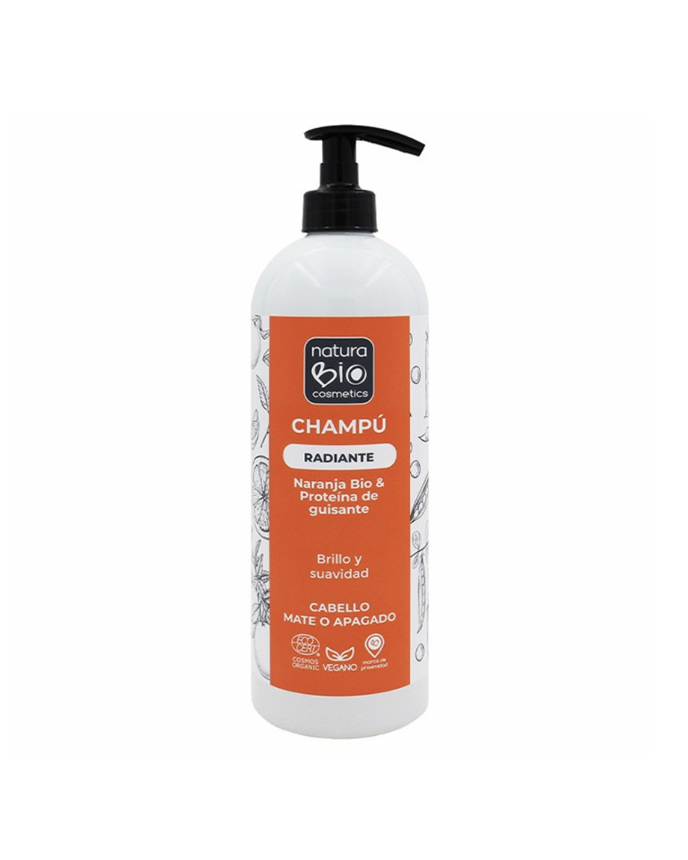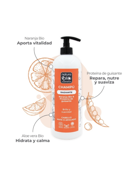 Champú radiante naranja Bio & proteina guisante 740ml - NaturaBIO Cosmetics