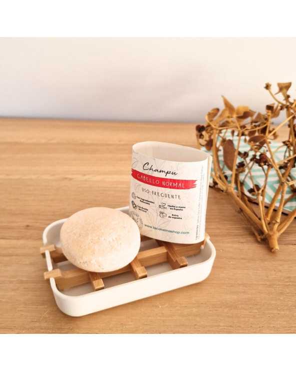 El champú natural sólido es la alternativa perfecta a los champús en envase de plástico. Con estas pastillas de champú te olvidarás de los envases que tanto espacio ocupan. Lo mejor de todo es que una pastilla de champú te dura aproximadamente 2 - 3 meses dependiendo de tu cabello.