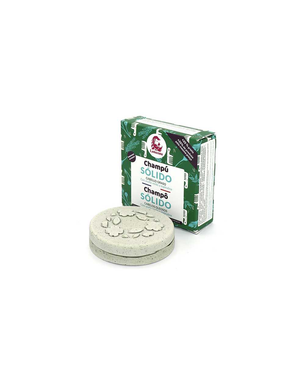 El champú sólido para cabello graso con arcilla verde y espirulina, además de regular la grasa de tu cuero cabelludo deja una sensación de frescor.