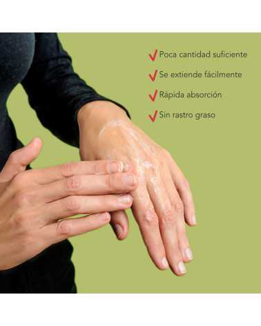 Esta crema muy rica en extractos y aceites vegetales aporta a la piel un torrente de vitaminas y minerales que hidratan, reparan y regeneran la piel de cualquier zona del cuerpo de manera natural y saludable. Es ideal para cuidar y recuperar la suavidad de manos y pies. Te sorprenderá que se absorbe en segundos sin dejar rastro. Hidrata y nutre en profundidad la piel gracias a la manteca de karité, un potente activo regenerador de la piel que además protege la piel de posibles grietas y picores. Previene el envejecimiento prematuro gracias a su alta concentración de aceite de oliva virgen extra gracias a su gran poder antioxidante que además ayuda a reducir las manchas y a regenerar pequeñas heridas y rasguños.