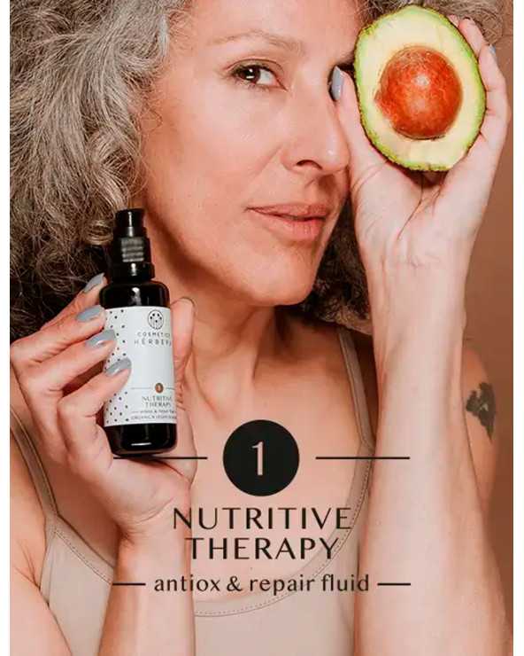 Con NUTRITIVE THERAPY mantenemos la firmeza de la piel, previniendo la aparición de arrugas y signos de expresión. Su alta concentración en hidrolato de nerolí tonifica la piel y potencia la acción antioxidante de los aceites orgánicos de argán, trigo y aguacate. Una galénica muy delicada para revolucionar el sueño de la belleza.