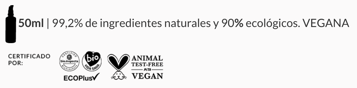 HIDROLATO DE AZAHAR o NEROLÍ ORGÁNICO (Citrus aurantium) estimula la regeneración celular y la producción de colágeno. ACEITE DE GERMAN DE TRIGO (Triticum vulgare) aporta emoliencia y sensación aterciopelada a la piel.