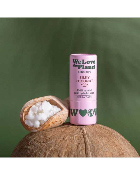 El Bálsamo Labial en stick Silky Coconut de We Love The Planet está especialmente indicado para proteger, nutrir e hidratar los labios más sensibles.