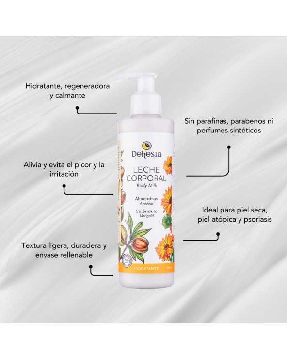 Leche Corporal de textura ligera y de fácil absorción para hidratar, calmar y reafirmar la piel.